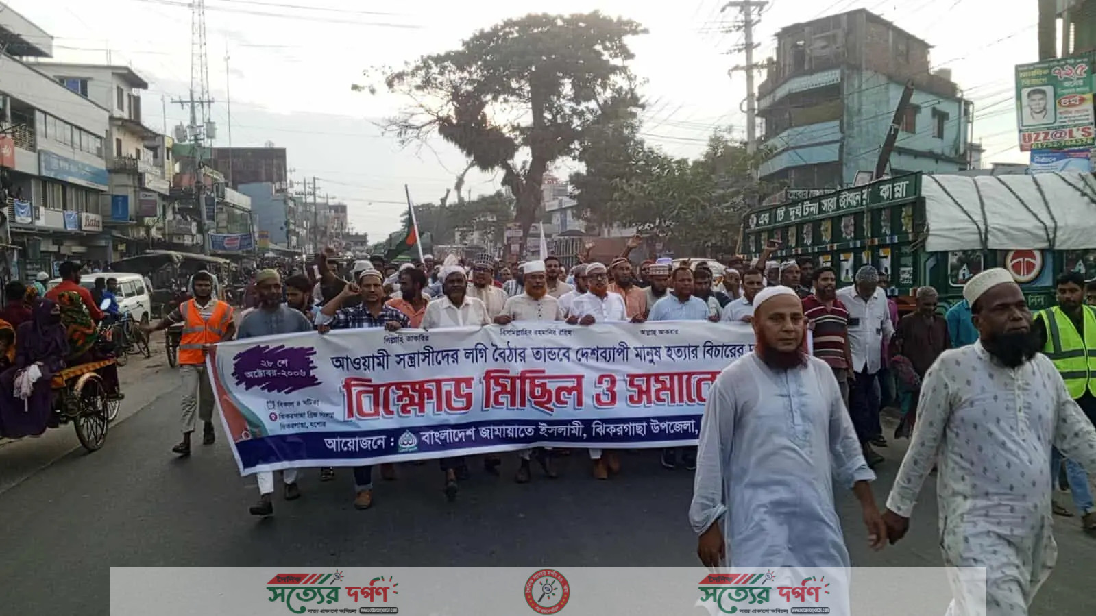 ঝিকরগাছা উপজেলা জামায়াতের সেক্রেটারি মুহাম্মদ নজরুল ইসলাম খাঁন এর সঞ্চালনায় বিক্ষোভ মিছিল ও সমাবেশে বিশেষ অতিথি ছিলেন সাবেক উপজেলা ভাইস চেয়ারম্যান অধ্যাপক জয়নাল আবেদীন।